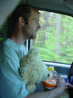 Auf dem Bild hat er mir das Auto-fahren beigebracht. Ist ja alles ganz einfach, solange jemand für mich aufs Gas drückt.