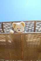 Als Tom 1998 beruflich nach Berlin fliegen musste, hat er daheim seinen Bären vergessen (ohne Bär wird nicht auswärts übernachtet!).