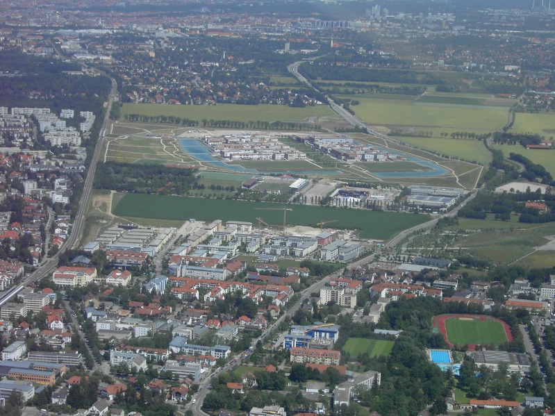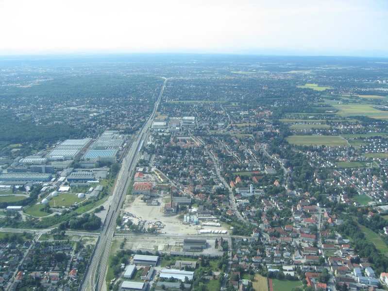 leider die Berge. Ein Blick nach Norden zeigte die Gebäude von MTU und MAN.