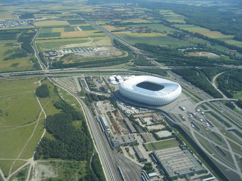 Und dann erschien das erste große Ziel dieser Rundflüge: das Münchner Fussballstadion, die Allianz-Arena.