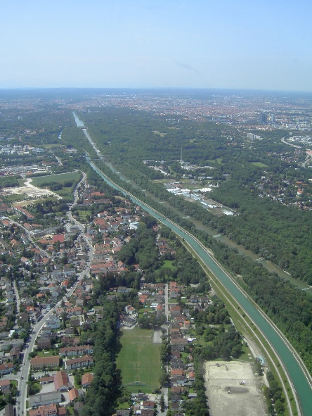 Weiter ging es Richtung Osten mit dem Überflug der Isar, hier mit Blickrichtung Süden (München). Schön zu sehen war auch der
