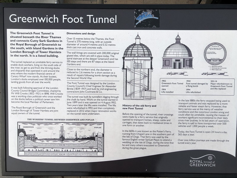 Das war etwas unerwartet für mich: ein Fußgängertunnel unter der Themse hindurch auf die Nordseite. Das kannte ich bisher nur aus Hamburg. Aber warum nicht