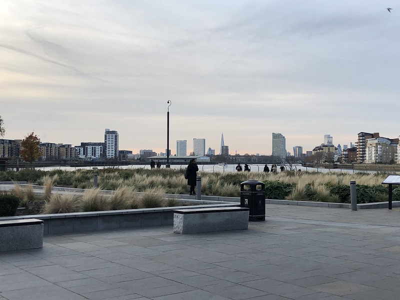 Zurück auf der Südseite (von der Island von Dog wieder in Greenwich) gab es noch einen Blick flussaufwärts nach London: