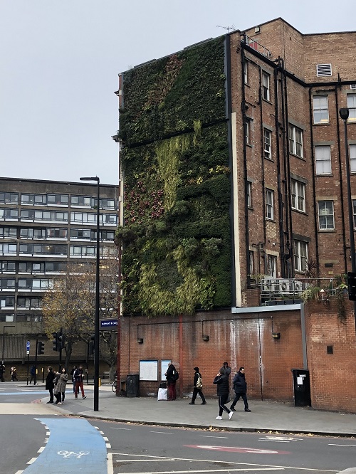 Auf dem Weg gab es übrigens eine interessante Hauswand: Grünzeug kann in der Stadt auch vertikal wachsen.
