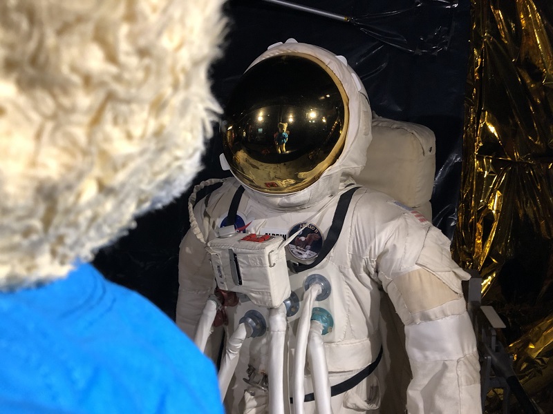 1:1-Modell der Mondlandefähre und ein Astronautenanzug: