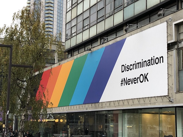 Sehr schön: das London College of Communication hat ein klares Statement an ihrer Fassade:
