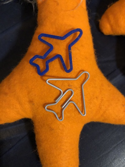Zur Erinnerung schenkte ich Wilhelmine noch zwei Flugzeuge zum Mitnehmen: eine Büroklammer und ein kleines Gummiband, beides in Flugzeugform.