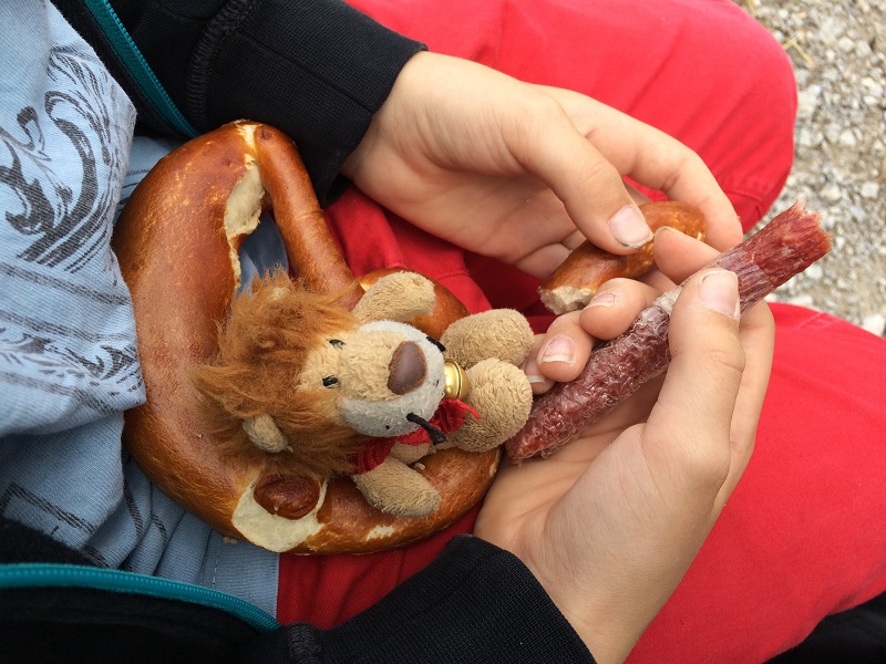 Am Gipfelkreuz angekommen trugen wir uns in das Gipfelbuch ein und genossen die verdiente Brotzeit.